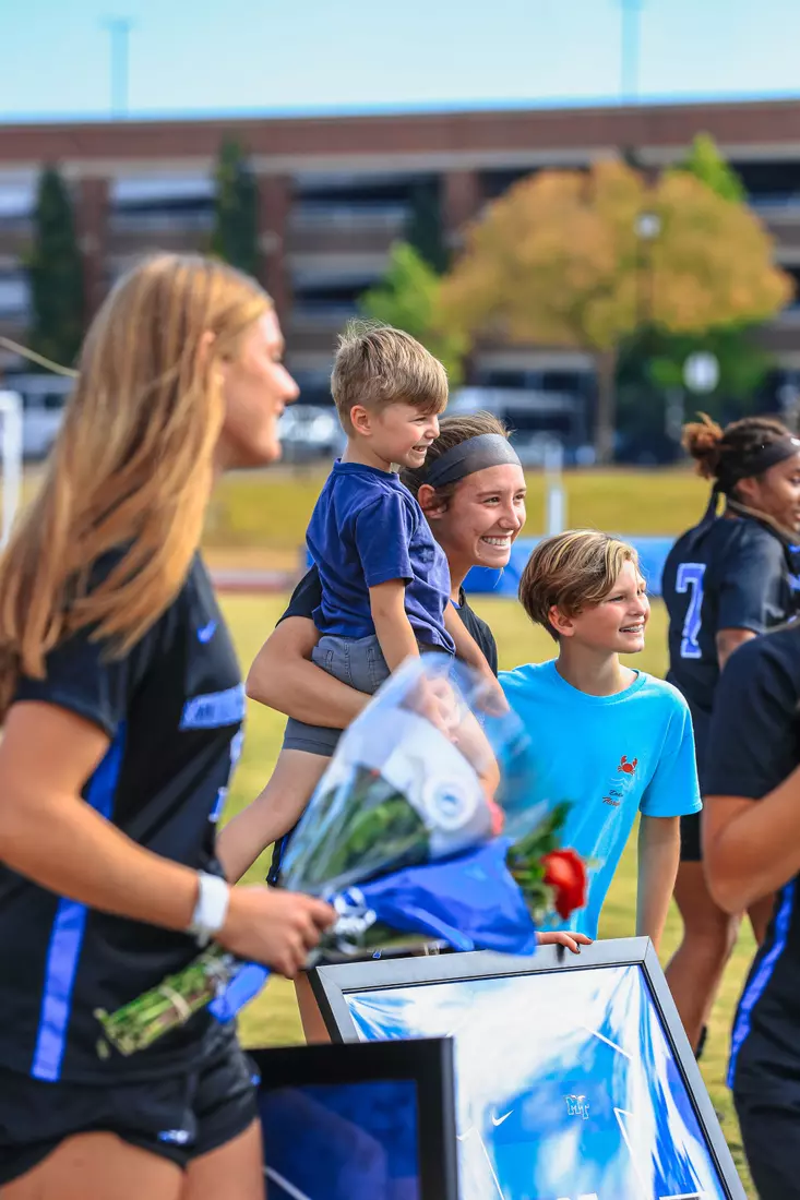 6- Number of Blue Raiders celebrating senior day at the Dean Hayes Track and Soccer Stadium. The list includes: goalkeeper Hannah Suder, forwards Cambell Kivisto, Gentry Davis and Elizabeth Slavinsky and defenders Jennifer Francis and Caroline Manley.